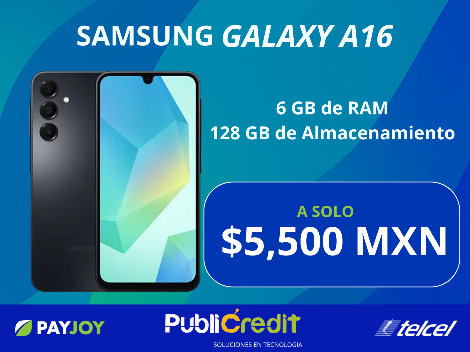 El Samsung Galaxy A16 trae pantalla Super AMOLED de 6.7″ FHD+, triple cámara de 50 MP, 6 GB de RAM + 128 GB de almacenamiento y batería de 5,000 mAh con carga rápida, ideal para usarlo todo el día en redes, fotos y juegos.