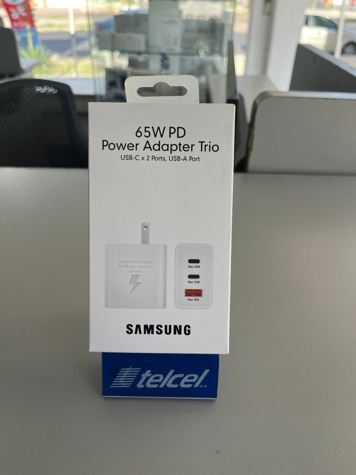 Samsung 65W PD Power Adapter Trio es un cargador súper práctico si quieres potencia y versatilidad en un solo adaptador. Incluye 3 puertos: 2 USB-C y 1 USB-A, para que puedas cargar hasta tres dispositivos al mismo tiempo sin estar cambiando cargadores.