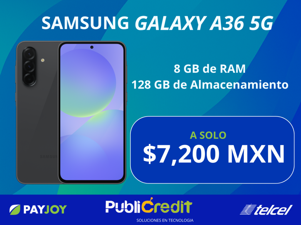 El Samsung Galaxy A36 5G tiene pantalla Super AMOLED de 6.7″ FHD+ a 120 Hz, ideal para ver todo nítido y fluido, incluso bajo el sol. Integra procesador Snapdragon 6 Gen 3, 6 GB de RAM y 128 GB de almacenamiento, triple cámara de 50 MP (50+8+5 MP) y batería de 5,000 mAh con carga rápida de hasta 45 W, además de resistencia IP67 y hasta 6 años de actualizaciones, pensado para redes, juegos y uso diario por varios años.