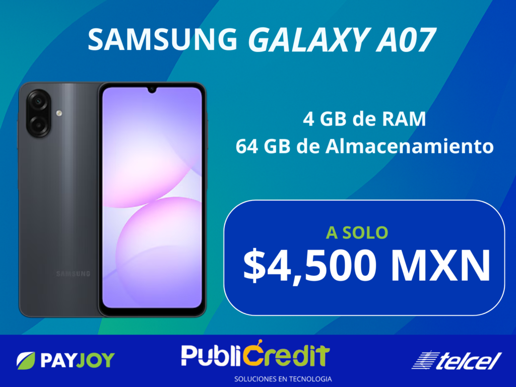 El Samsung Galaxy A07 es un equipo pensado para quien quiere algo moderno sin gastar de más. Trae una pantalla de 6.7″ HD+ con tasa de refresco de 90 Hz, ideal para que el scroll en redes, los videos y los juegos se vean más fluidos. El diseño es delgado (7.6 mm) y viene con resistencia al polvo y salpicaduras IP54, así que soporta mejor el uso diario, lluvia ligera o un poco de arena