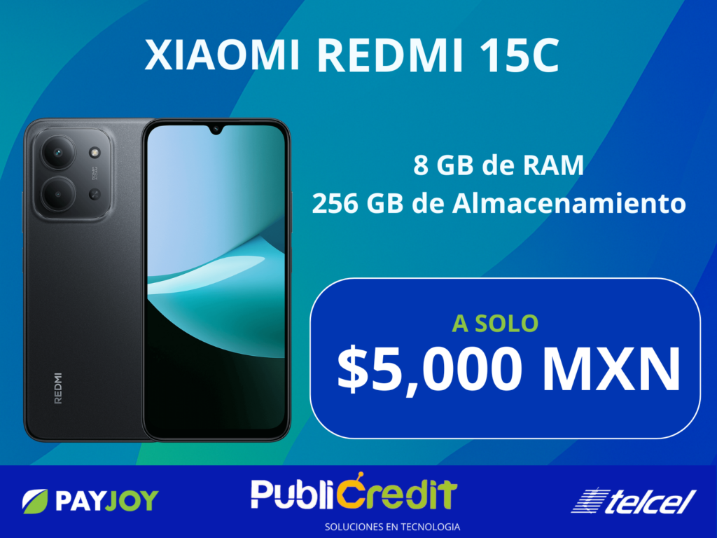El Xiaomi Redmi 15C ofrece pantalla de 6.9″ HD+ a 120 Hz, MediaTek Helio G81 Ultra, hasta 8 GB de RAM y 256 GB de almacenamiento, cámara de 50 MP y batería de 6,000 mAh con carga rápida de 33 W, ideal si quieres equipo grande, fluido y con mucha duración.