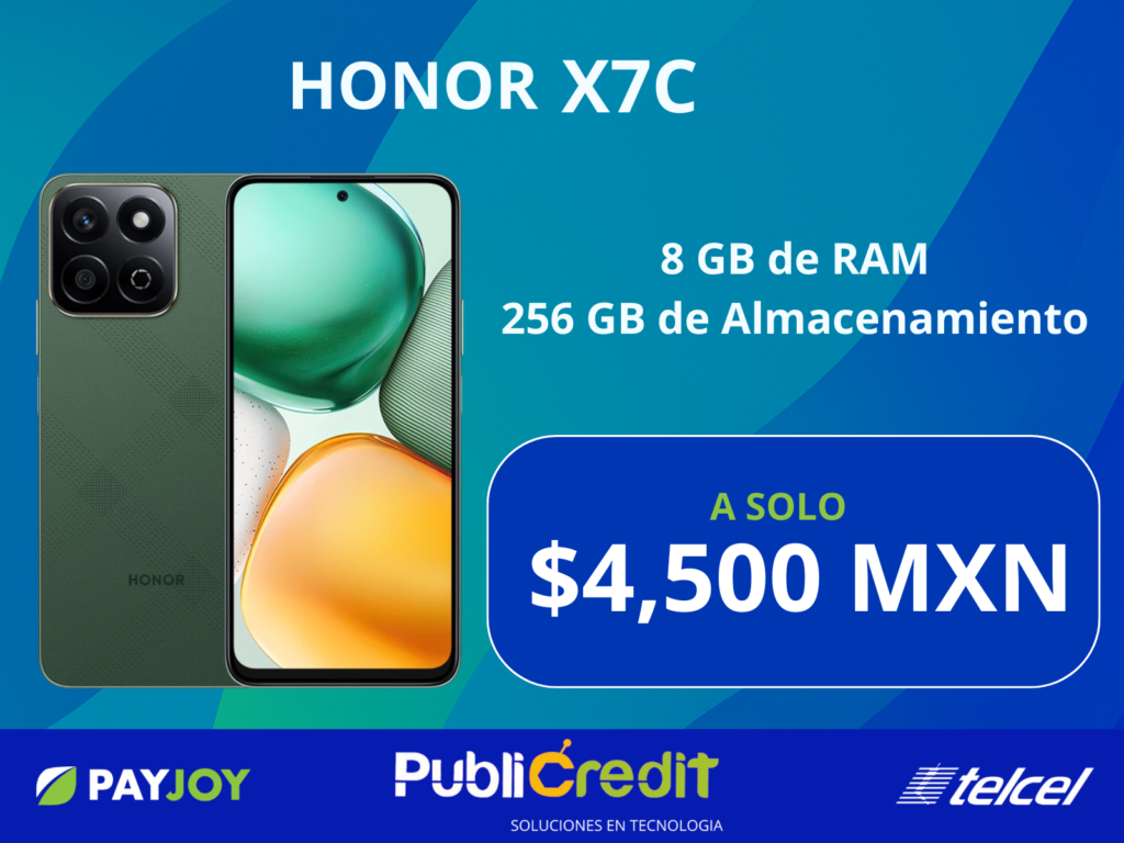 El HONOR X7c ofrece pantalla de 6.77″ HD+ a 120 Hz, procesador Snapdragon 685, 8 GB de RAM y 256 GB de almacenamiento, cámara principal de 108 MP + 2 MP de profundidad, frontal de 8 MP, y batería de 5,200 mAh con carga rápida de 35 W, además de cuerpo resistente con IP64 y certificación anti-caídas, ideal si buscas buen rendimiento, cámara potente y mucha autonomía.